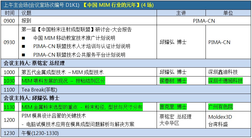 主辦單位:中國粉末注射成型聯盟(PIMA-CN)
