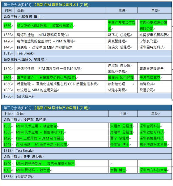 議程表預計還有10%的調整,【綠色標注】,表示講題只在【東莞場次】