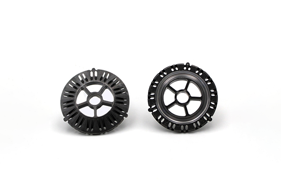 該零件結(jié)構(gòu)相當復(fù)雜,呈圓形,邊緣周圍有30個窄通孔槽,還有5個肋條狀結(jié)構(gòu)與中心孔相連。與此前采用的機械加工和線切割工藝相比,金屬注射成形(MIM)工藝使成本降低了 40%。